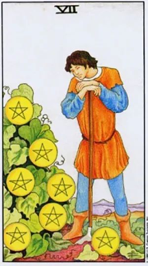 当星币七出现时,代表在物质方面有所丰收,物质的欲望得到满足,财富的基础趋于稳固。