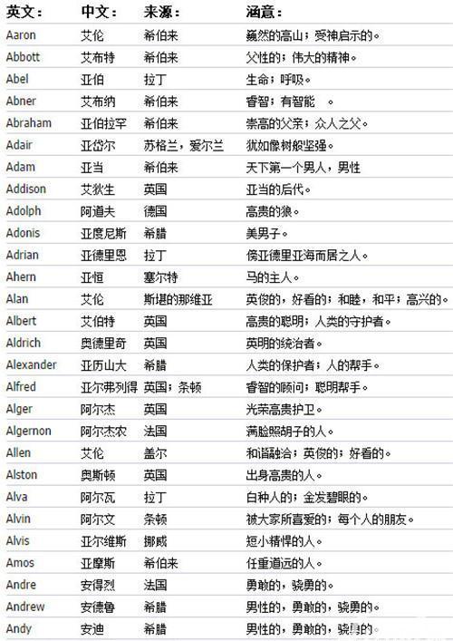二、a开头的英文名